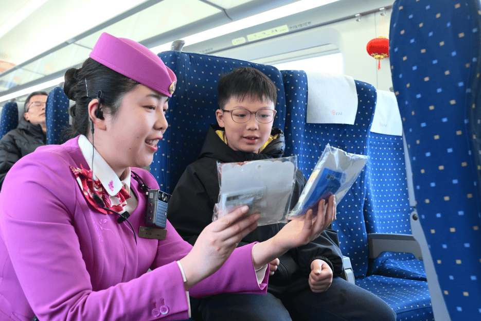 针对春运期间的行李较多、乘降率较高,列车工作人员穿梭在各个车厢,遇到老年旅客,会主动帮忙搬运行李、调整摆放位置,遇到带孩子的家庭,会蹲下身轻声叮嘱家长照顾好身边的小孩。一句句贴心的叮嘱,一个个暖心的举动,让“文明乘车、平安春运”的理念不再是冰冷的文字,而是融入点滴服务的人文关怀,让车厢里处处充满温情与善意。